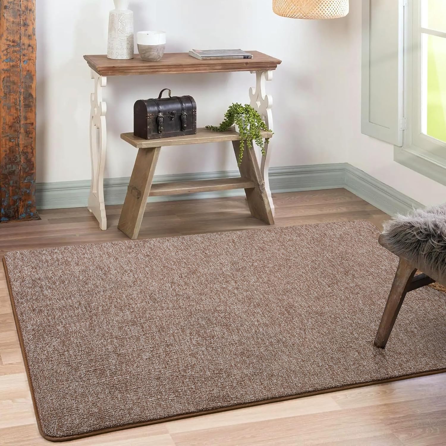 Non Slip Area Rug for Bedroom: There are thousands of non-slip rubber protrusions at the bottom of the 3×5 entryway rug, which enhance the friction between the small carpet and the floor and keep the brown and white rug stable on wooden or other floors