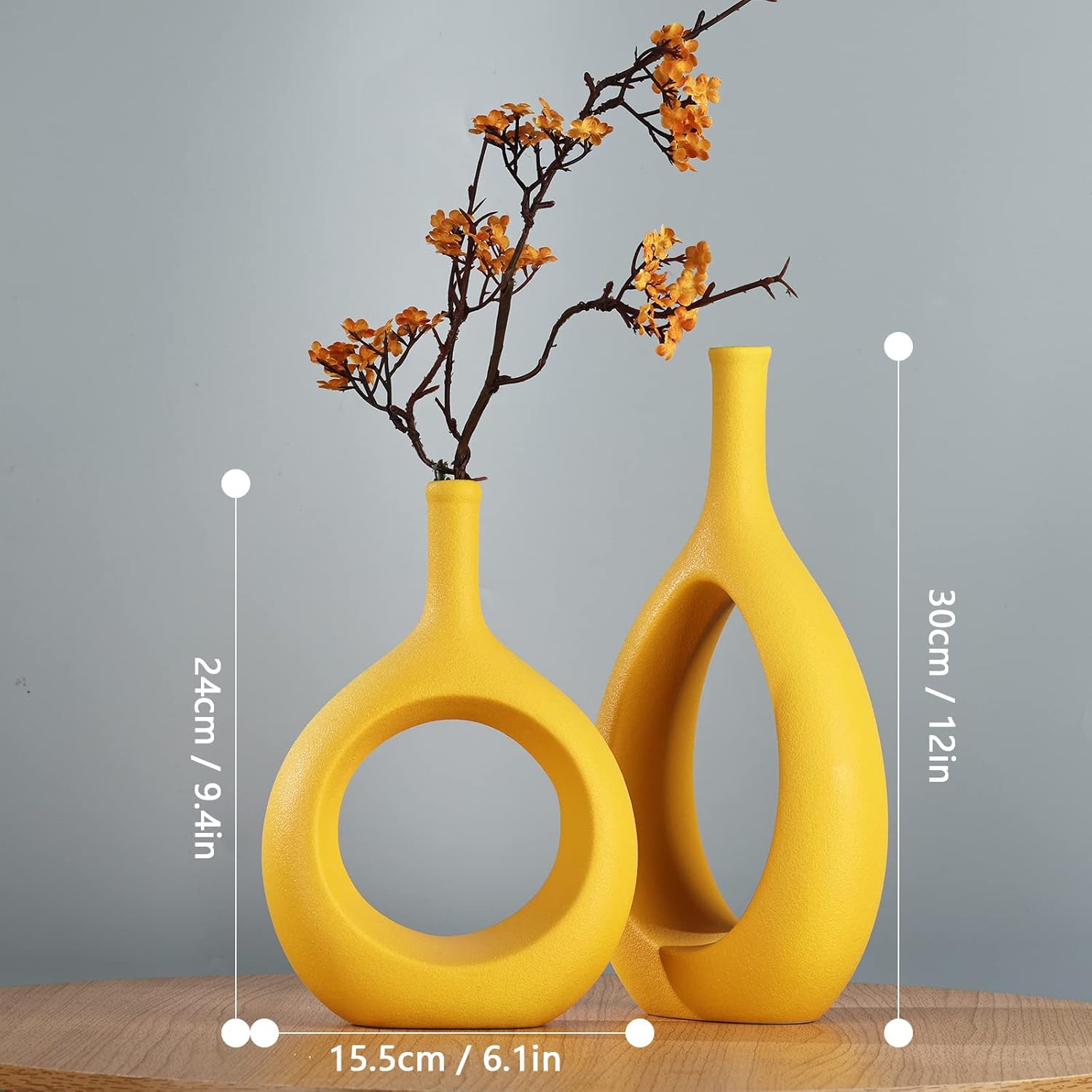 • Yellow Ceramic Vase Set 2,Modern Hollow Circle with Hole Flower Vase for Home Decor,for Table Centerpieces,Farmhouse,Fire Place,Living Room,Bedroom,Office,Bookshelf,Rustic Decor